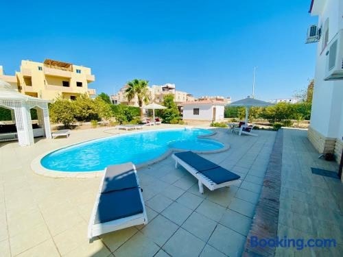 Die Unterkunft villa 5 in magawish, die über einen Garten, eine Gemeinschaftslounge und eine Terrasse verfügt, bietet Übernachtungsmöglichkeiten in Hurghada mit kostenlosem WLAN und Poolblick.