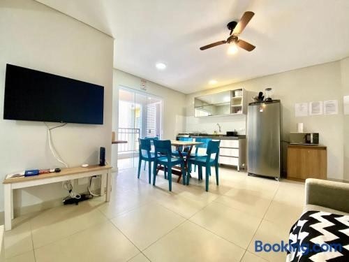Con vista sulla montagna, Jathy - Apt no Centro com Piscina e Varanda Gourmet propone un alloggio con balcone e macchina da caffè, a circa 1,1 km da Stazione Autobus di Ubatuba.