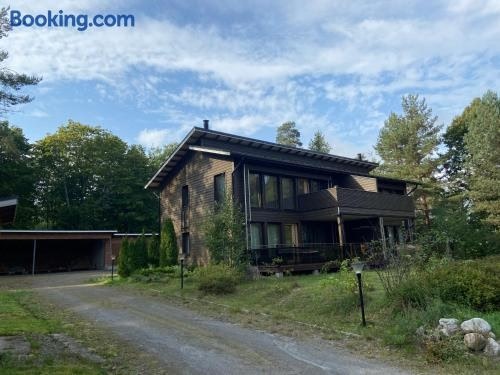 Die Unterkunft Villa Rauhan Helmi verfügt über Seeblick und einen Garten, eine Terrasse sowie einen Tennisplatz, ungefähr 500 m von Angry Birds Activity Park Saimaa entfernt.