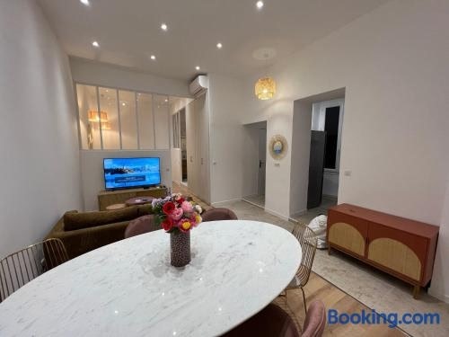 Ajaccio T2 Standing Place du marché is a beachfront property located in Ajaccio, 600 metres from Saint Francois Beach and 1.5 km from Port de Plaisance Charles Ornano. The air-conditioned accommodation is 7.1 km from Campo Dell'Oro Train Station.