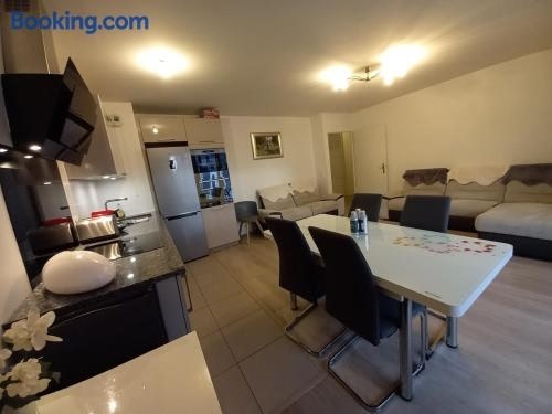 Offering a terrace and city view, Charmant Appartement Disneyland is situated in Chessy, less than 1 km from Val d'Europe RER Station and 3.7 km from Disneyland Paris. This property offers access to a balcony, free private parking and free WiFi.