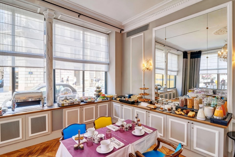 Das 4-Sterne-Hotel Bradford Elysées begrüßt Sie in einem Haussmannschen Gebäude in der Nähe der berühmten Avenue des Champs Élysées im Zentrum von Paris. Freuen Sie sich auf elegante Zimmer und einen Frühstücksraum mit Glasdach. Jedes der geräumigen Zimmer im Bradford Elysées verfügt über eine klassisch-elegante Einrichtung und Kabel-TV. Einige Zimmer bieten einen Balkon und in jedem Zimmer ist eine Minibar mit kostenlosen alkoholfreien Getränken vorhanden. Die gefliesten Badezimmer sind mit einem Marmorwaschbecken ausgestattet. Ein Frühstücksbuffet wird Ihnen jeden Morgen im hellen Speiseraum des Hotels serviert. Auf Wunsch frühstücken Sie auch auf Ihrem Zimmer. Von nachmittags bis spät am Abend können Sie zudem kostenlose alkoholfreie Getränke und Snacks in der Hotellobby genießen. Sie können diesen Service in jedem Pariser Astotel in Anspruch nehmen und kostenfrei ein Getränk oder einen Snack zu sich nehmen. Das Hotel Bradford Elysées befindet sich 5 Gehminuten vom U-Bahnhof Franklin D. Roosevelt entfernt. Von dort aus gelangen Sie direkt zum Jardin des Tuileries, dem Louvre und der Place de la Bastille. In allen Bereichen des Hotel steht kostenfreies WLAN zur Verfügung und alle Zimmer sind mit dem Aufzug erreichbar. Nach einem Tag voller Besichtigungen können Sie sich in der Hotellounge entspannen.