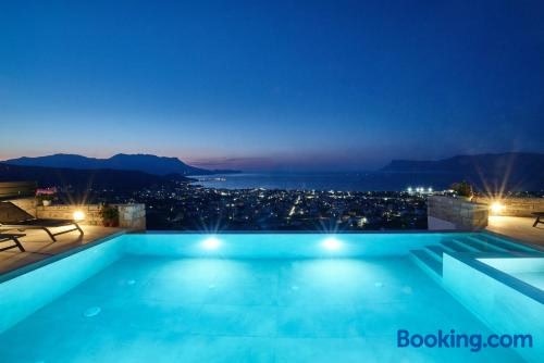 Die Unterkunft Luxury Villa Argi infinity private pool, die über einen Außenpool, einen Garten und eine Terrasse verfügt, bietet Übernachtungsmöglichkeiten in Kissamos mit kostenlosem WLAN und Stadtblick.