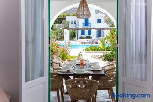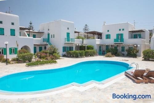 Die Unterkunft Villa Nerea, die über einen Außenpool, einen Garten und eine Terrasse verfügt, bietet Übernachtungsmöglichkeiten in Ornos mit kostenlosem WLAN und Poolblick. Diese Unterkunft mit Gartenblick bietet einen Balkon.