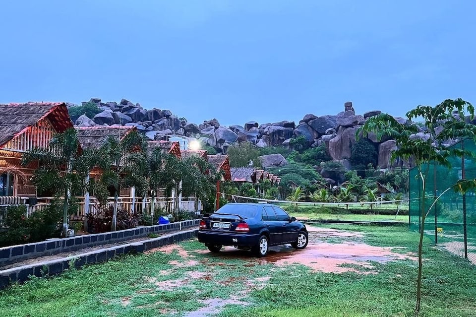 Oshos Organic Resort Hampi si trova a Hampi e vanta una posizione strategica in montagna e in riva al fiume. Tempio di Virupaksha e Hemakuta Hill Temple Complex sono due dei più importanti punti di riferimento della zona, mentre a livello naturalistico spiccano Matanga Hill e Sito Storico Anjanadri Hill. Dimentica la routine di tutti i giorni e dedicati ad attività all'aperto come jogging e gite a piedi o in bici. Resort a bordo lago con bar/caffetteria e ristoranteIn questo resort per non fumatori sono disponibili un ristorante, uno snack bar e un bar/caffetteria. Non mancano gli extra a costo zero come il Wi-Fi gratuito nelle aree comuni. Potrai contare anche su un parcheggio gratuito e un cocktail di benvenuto. Altri servizi includono un angolo caffè nelle aree comuni, una reception aperta 24 ore su 24 e supporto per la prenotazione di escursioni e biglietti. Il servizio di pulizie è disponibile una volta a soggiorno. Oshos Organic Resort Hampi offre 15 sistemazioni. Durante il tuo soggiorno puoi navigare su Internet utilizzando la connessione wireless gratuita (più di 25 Mbps di velocità). Su richiesta sono disponibili cambio degli asciugamani e cambio delle lenzuola. Le pulizie vengono eseguite una volta a soggiorno. Le attività ricreative elencate di seguito sono disponibili in loco o nelle vicinanze. È possibile che siano a pagamento.