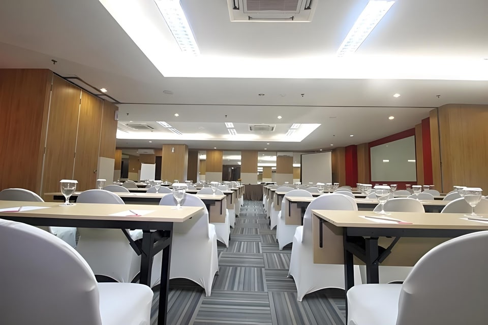 @HOM Simpang Lima Semarang liegt im Herzen von Semarang, nur 5 Gehminuten entfernt von: Indonesien Kaya Park und Simpang Lima Park. Dieses Hotel ist 1,4 km von Kirche Santa Perawan Maria Ratu Rosario Suci Randusari - Kathedrale und 1,5 km von Lawang Sewu entfernt. Gönn dir Massagen oder genieße den schönen Ausblick von folgenden Punkten: Terrasse und Garten. Kostenloses WLAN, ein Concierge-Service und ein Fernseher im öffentlichen Bereich stehen ebenfalls zur Verfügung. Gegen Gebühr wird täglich von 06:00 Uhr bis 10:00 Uhr ein Frühstücksbuffet angeboten. Zum Angebot gehören ein Express-Check-in, ein Express-Check-out und kostenlose Zeitungen in der Lobby. Du kannst von dem kostenpflichtigen Flughafentransfer profitieren und findest vor Ort außerdem Folgendes vor: Parkservice (kostenlos). Fühl dich in einem der 121 klimatisierten Zimmer mit LED-Fernseher wie zu Hause. Ein WLAN-Internetzugang (kostenlos) ist ebenso verfügbar wie Kabelempfang. Es sind eigene Badezimmer mit Duschwannen vorhanden, die über kostenlose Toilettenartikel und Hausschuhe verfügen. Zur Austattung gehören Telefone ebenso wie Wasserkocher mit Kaffee-/Teezubehör und kostenloses Mineralwasser.