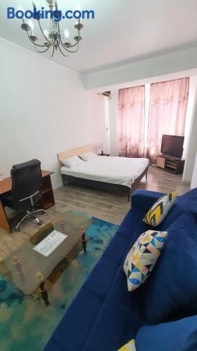 Die Unterkunft FlatRent Apartment ist gelegen in Bischkek. Gäste, die in dieser Ferienwohnung übernachten, haben Zugang zu einer voll ausgestatteten Küche und einem Balkon.