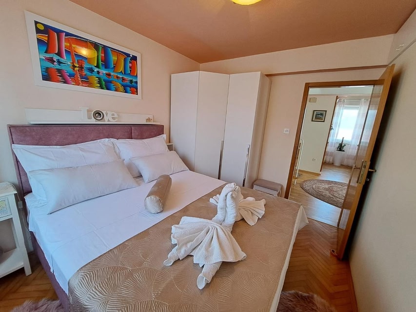 Die Unterkunft Apartment Bella Sanja besticht durch Meerblick und Übernachtungsmöglichkeiten mit einem Balkon und einem Wasserkocher, ungefähr 1,8 km von Strand Ježinac entfernt.