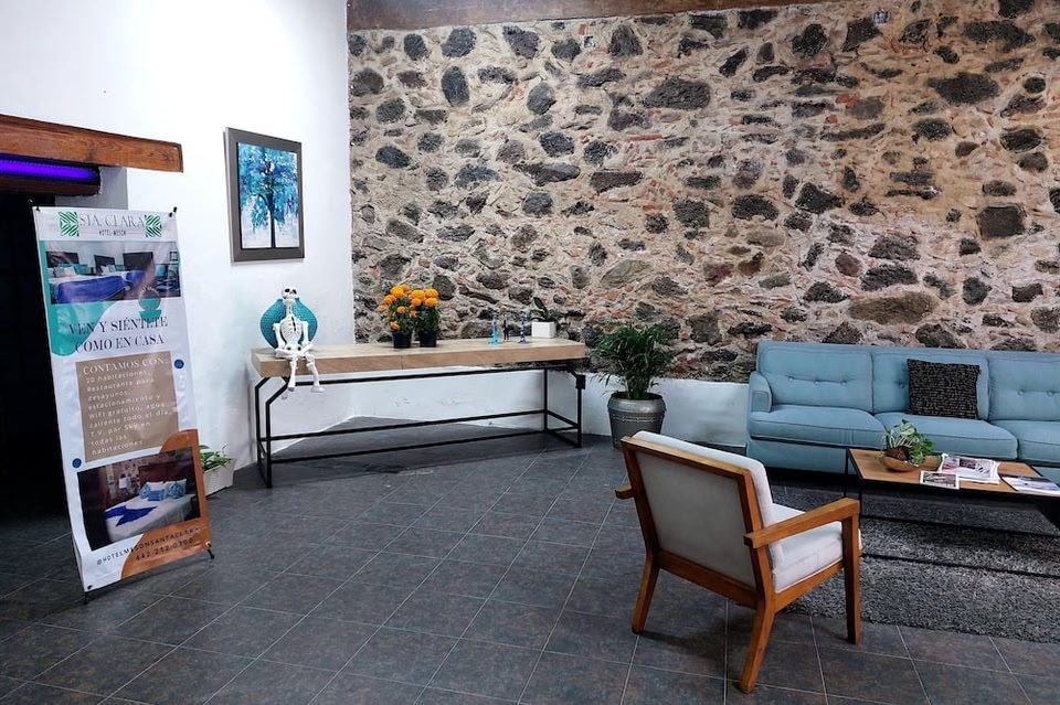 Hotel Mesón Santa Clara besticht durch eine zentrale Lage in Querétaro, nur 5 Minuten Fahrt entfernt von: Aquädukt von Santiago de Querétaro und Theater der Republik. Dieses Hotel ist 0,4 km von Zenea Garden und 0,4 km von Kapuzinerkloster entfernt. Kostenloses WLAN, ein Friseursalon und ein Fernseher im öffentlichen Bereich sind verfügbar. Gegen Gebühr wird täglich von 08:00 Uhr bis 11:30 Uhr ein nach Wunsch zubereitetes Frühstück angeboten. Zum Angebot gehören ein rund um die Uhr geöffnetes Businesscenter, eine rund um die Uhr besetzte Rezeption und eine Gepäckaufbewahrung. Buche einen Aufenthalt in einem der 20 Zimmer mit Flachbildfernseher. Dein Bett bietet Daunenbettdecken und hochwertige Bettwaren. Ein WLAN-Internetzugang (kostenlos) ist ebenso verfügbar wie Satellitenempfang. Die Badezimmer bieten kostenlose Toilettenartikel und Haartrockner.