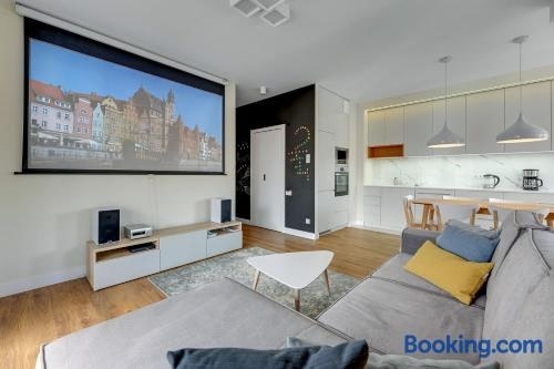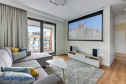Bequem gelegen im Zentrum von Danzig, bietet die Unterkunft Premium Family & Business Old Town Riverside Apartment with parking eine Veranda / Patio.