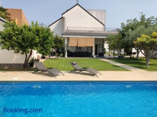 Die Unterkunft Chalet con piscina, die über einen saisonalen Außenpool und eine Terrasse verfügt, bietet Übernachtungsmöglichkeiten in San Fernando mit kostenlosem WLAN und Gartenblick.