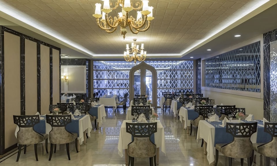Das direkt am Strand gelegene Royal Alhambra bietet Ihnen einen Privatstrand, Innen-/Außenpools und Wellnesseinrichtungen. Freuen Sie sich auf klimatisierte Zimmer mit Sat-TV und Balkon. Alle Zimmer im Royal Alhambra Palace sind mit modernen Möbeln eingerichtet. Sie verfügen alle über Teppichboden und einen Safe. Einige Zimmer bieten darüber hinaus einen Panoramablick auf das Meer. Das Hauptrestaurant serviert Ihnen das Frühstückbuffet sowie Mittag- und Abendessen. Kosten Sie auch die unterschiedlichen Geschmacksrichtungen in der Patisserie (mit frischem Kuchen und Gebäck), im türkischen Zelt (mit traditionellen türkischen Backwaren), in der Snackbar und an den Imbissständen. Die Bars in der Lobby, am Strand und am Pool servieren Ihnen erfrischende Getränke. Zu den Wellnesseinrichtungen zählen ein türkisches Bad, eine Sauna und ein Fitnessraum. Massagen können arrangiert werden. Spielen Sie im Royal Alhambra Palace Darts, Tischtennis und Beachvolleyball. Die kleinen Gäste vergnügen sich im Miniclub. Der Flughafen Antalya ist 57 km vom Royal Alhambra Palace entfernt. License number: 15117