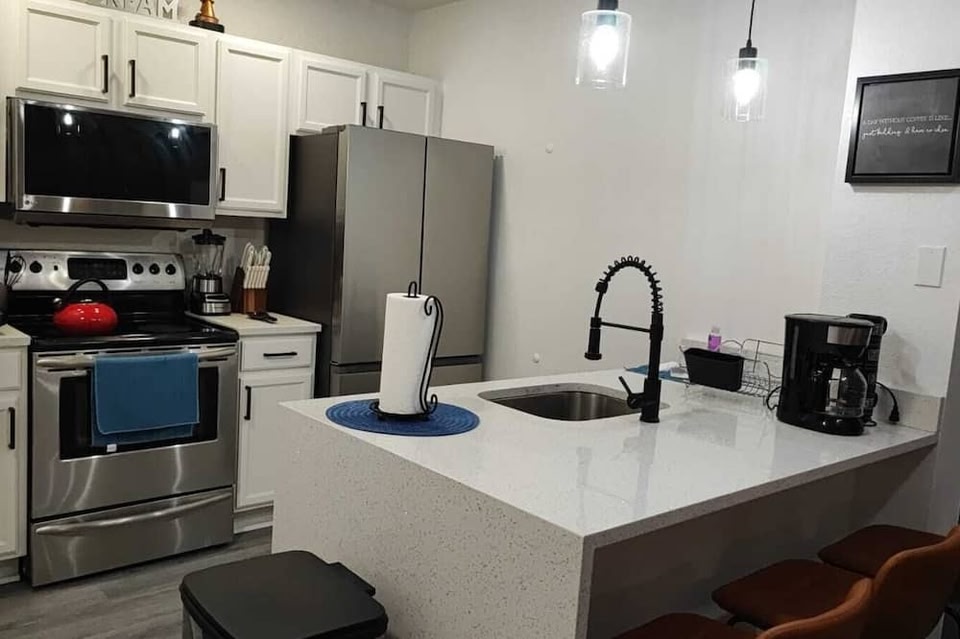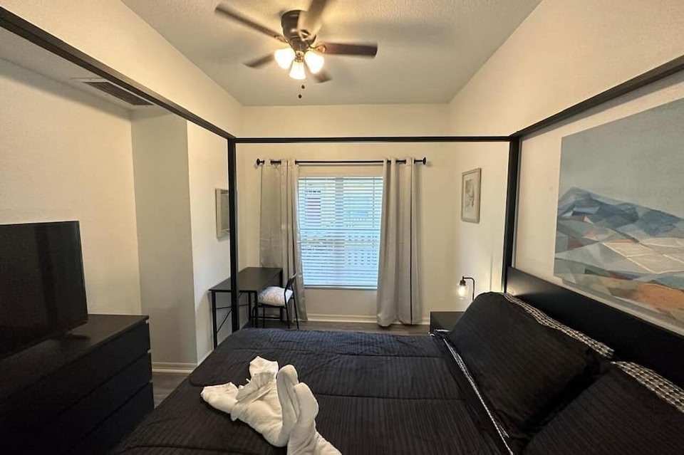 Mitten in Kissimmee befindet sich diese Villa. Mystic Dunes Golf Club und Arnold Palmer's Bay Hill Golfklub sind einen Ausflug wert, wenn du etwas Aufregendes erleben möchtest. Wer lieber shoppen geht, kommt hier auf seine Kosten: Altstadt und Einkaufszentrum Orlando Vineland Premium Outlets. ESPN Wide World of Sports Complex – hier erwarten dich spannende Veranstaltungen. Eine beliebte Attraktion vor Ort ist außerdem die folgende: Walt Disney World® Resort. In Kissimmee heißt dich diese Villa herzlich willkommen. Es sind nur 10 Gehminuten zu Capone's Dinner Show und 14 Gehminuten zu Kissimmee Go-Karts, also lass das Auto einfach an der Unterkunft stehen, die praktische nicht überdachte Parkplätze auf dem Gelände bietet. Dieses Feriendomizil bietet seinen Gästen 3 Schlafzimmer, einen Grill und Verdunkelungsvorhänge. Dank der Ausstattung mit WLAN-Internetzugang (kostenlos) und Fernseher ist für gute Unterhaltung gesorgt. Außerdem ist vor Ort eine Waschmaschine mit Trockner verfügbar – du kannst also etwas Gepäck sparen, indem du weniger Kleidung einpackst.
