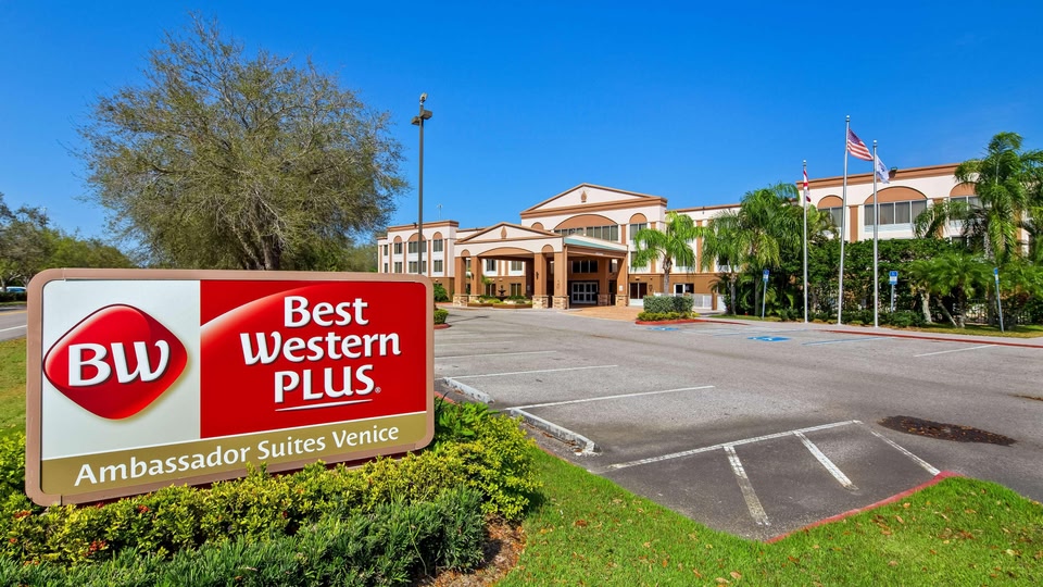 Dieses Suitehotel befindet sich an der Autobahn Interstate 75. Sie wohnen hier nur 15 Fahrminuten vom Zentrum von Venice und dem Strand Venice Beach entfernt. Freuen Sie sich auf einen Außenpool und geräumige Suiten mit einem Flachbild-Kabel-TV. Zur Standardausstattung jeder der modernen Suiten in der Unterkunft Best Western Plus Ambassador Suites gehören eine Mikrowelle, ein kleiner Kühlschrank sowie Kaffeezubehör. Alle Suiten bieten einen Sitzbereich und kostenfreien WLAN-Zugang. Täglich wird Ihnen in den Venice Best Western Plus Suites ein komplettes warmes Frühstück serviert. In der Unterkunft erwartet Sie auch ein Souvenierladen, in dem Sie Snacks und Getränke erwerben können. Als Gast der Unterkunft Best Western Plus erhalten Sie kostenfreien Zugang zum Fitnessraum. Auch das Businesscenter können Sie kostenfrei in Anspruch nehmen. Ihr Fahrzeug stellen Sie ebenfalls kostenfrei auf Parkplätzen am Haus ab. Vom Golfclub Venice trennen Sie in diesem Hotel 4,8 km. Die Innenstadt von Sarasota und die Insel Siesta Key sind jeweils 30 Fahrminuten in nördlicher Richtung entfernt.