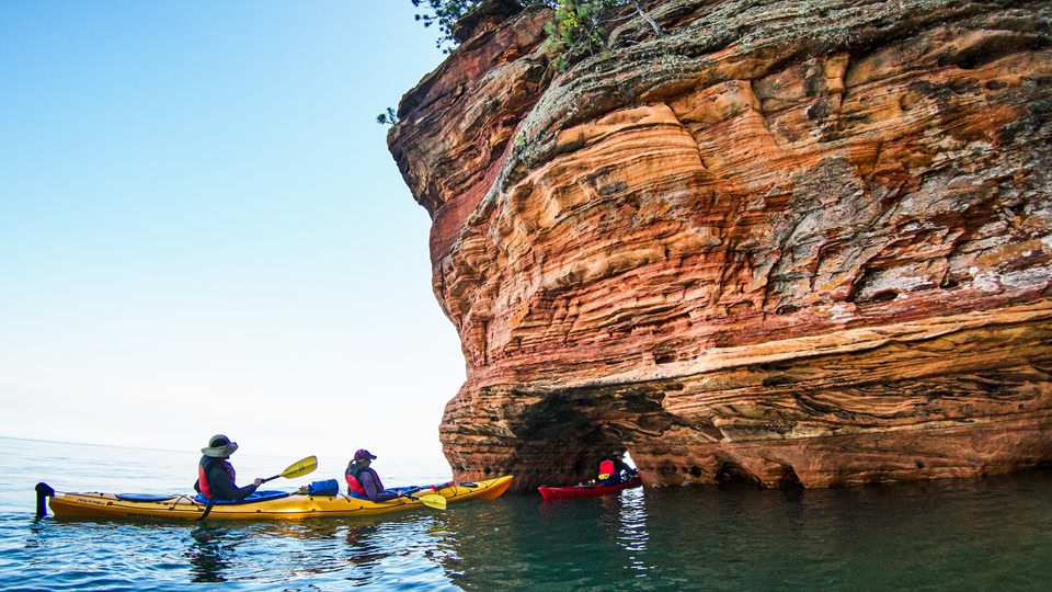 Die Apostelinseln liegen am Lake Superior, dem größten Süßwassersee der Welt. Der Archipel bietet die einzigartigste Landschaft in Wisconsin. Entdecke in den wärmeren Monaten mit dem Kajak rote Sandstein-Höhlen und geheime Strände und packe für ein Picknick ein Stück dänischen „Kringle“-Kuchen ein. Im Winter wanderst du über die gefrorene Oberfläche des Lake Superior und suchst nach Bögen mit Eiszapfen.